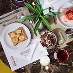 Konuklar restoranda kahvaltı yapabilir. Tesise 200 metre uzaklıkta Avrupa yemekleri sunan Astra Cafe Restaurant, Epikouros Taverna gibi çeşitli restoranlar bulunmaktadır.
